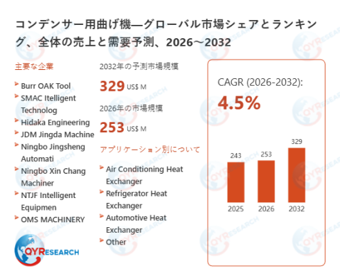 2026年3月26日に、QY Research株式会社(所在地:東京都中央区)は「コンデンサー用曲げ機―グローバル市場シェアとランキング、全体の売上と需要予測、2026~2032」の最新調査資料を発行しました。本報告書では、世界のコンデンサー用曲げ機市場の規模、動向及び成長予測を詳細に分析し、将来の市場変化と発展方向について展望しております。製品タイプ、応用分野及び地域別にコンデンサー用曲げ機市場を分類し、各セグメントの売上高、市場シェア及び成長傾向を明確に提示しております。主要企業の概要、販売実績、最新の研究開発動向、競争環境について重点的に紹介するとともに、市場成長を推進する中核的要素と業界が直面する課題を分析し、これに基づき将来の市場機会を予測しております。