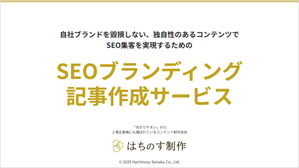 ・SEOブランディング記事作成サービス:https://hachinosu-seisaku.co.jp/seo-branding/