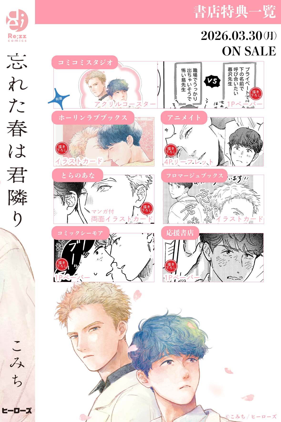 株式会社ヒーローズ(本社:東京都千代田区、代表取締役:白井勝也)はBLレーベル・Re;zzコミックスの第三弾として、『偽龍の守人』(著:藤瀬とな)と『忘れた春は君隣り』(著:こみち)を2026年3月30日(月)に発売いたします。また、発売を記念した「Re;zzコミックス刊行記念フェア」第二弾も同日スタートいたします。
