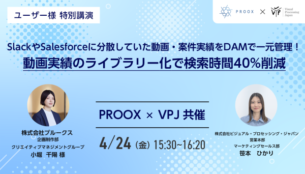 この度、累計8000本以上の制作実績を持つ、動画マーケティング会社の株式会社プルークス様をお招きし、動画作品の企画業務効率化と営業の提案力向上を目的とした、デジタルアセット管理(DAM)の活用について、ご担当者様より特別に講演いただきます。