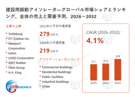 2026年4月2日、QYResearch株式会社(所在地:東京都中央区)は、「建設用振動アイソレータ―グローバル市場シェアとランキング、全体の売上と需要予測、2026~2032」に関する最新の調査レポートを発表しました。