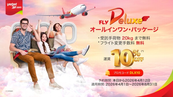 (東京, 2026年4月2日) – ベトジェットは、デラックスクラス運賃が10%割引、エコチケット運賃が100%割引になる期間限定のチケットプロモーションを実施し、世界中の旅行者の皆様に対し、ベトナムおよびその先の目的地へ向けた大変お得な夏の旅行プランをご提案します。同社は4月28日に、静岡 – ハノイ線の就航も予定しています。