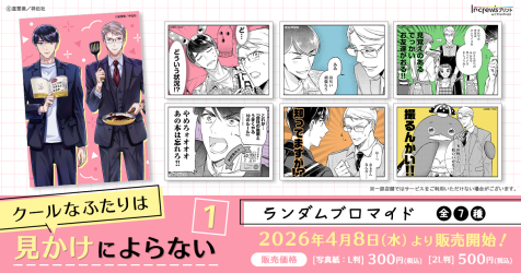 株式会社インクルーズ(東京都渋谷区、代表取締役社長 山﨑 健司)は、4月8日(水)より、日本全国のコンビニエンスストア店内のマルチコピー機を中心に、気軽にプリントできる「インクルーズプリント by eプリントサービス」にて、道雪葵先生の「クールなふたりは見かけによらない」のランダムブロマイド第1弾が販売開始したことをご報告させていただきます。