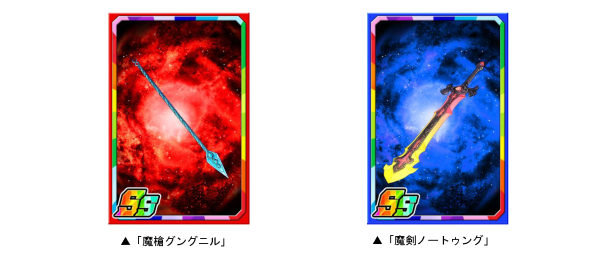 ダンジョンのボスモンスターを倒すと、まれに新たな限定子分カード「魔槍グングニル」「魔剣ノートゥング」が手に入ります。このカードを複数枚集めると進化させることができ、子分スキルの効果が強力になります。