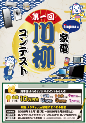 株式会社ノジマ(代表執行役社長・野島廣司)は、2025年12月1日~2026年2月28日にかけて実施した「第一回 ノジマ家電川柳コンテスト」の受賞作品を決定しました。本コンテストは、家電にまつわる“あるある”や共感できる日常のひとコマを川柳として募集し、当社と家電製品についてより身近に感じていただくための新たな取り組みとなりました。応募総数3,599句の中から、金賞をはじめとする受賞作品14句を発表いたします。