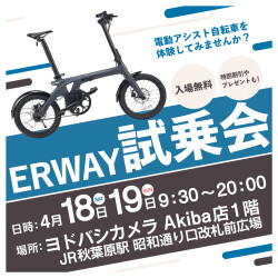 鑫三海株式会社(本社:大阪府堺市堺区、代表取締役:伴場 義通)は、電動アシスト自転車ブランド「ERWAY(イーアールウェイ)」の大試乗会を、ヨドバシカメラ マルチメディアAkiba店と合同で開催いたします。