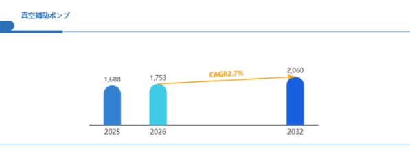 先端ロジックやパワー半導体、先進パッケージングなどの次世代半導体製造では、より高精度な圧力制御と高速排気が求められています。こうした高度プロセスに対応するため、中真空領域の排気能力を強化できる真空補助ポンプの重要性が高まっています。特に大型チャンバーや多室構成装置では真空補助ポンプの採用が不可欠となり、半導体関連投資の拡大が今後の市場機会を大きく押し上げると期待されます。
