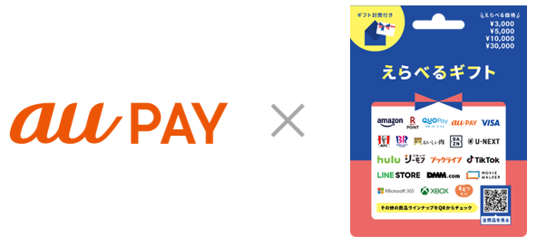 auペイメント株式会社(本社:東京都港区、代表取締役社長:菊池 良則、以下 auペイメント)は、au PAY 残高へチャージができる「au PAY ギフトカード」が、インコム・ジャパン株式会社(本社:東京都新宿区、代表取締役:荒井 琢麿、以下 インコム)が2026年4月7日に発売する、受け取った方が自分の好みに合わせて商品を選べるマルチチョイス型ギフトカード「えらべるギフト」の交換先として対応したことをお知らせします。