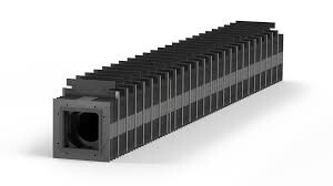 角型ジャバラとは、工作機械や自動化装置、搬送設備などに用いられる角断面形状の伸縮式保護カバーであり、直線ガイド、ボールねじ、リニアスケールなどの精密機構部を切粉、粉塵、冷却液および外部衝撃から保護する目的で設計された機械要素です。角型ジャバラは一般的に耐摩耗性布材、合成樹脂シート、金属補強板などを積層構造として製作され、蛇腹状に折り畳まれることでコンパクトな収納と長ストロークの追従性を両立します。また、装置の可動範囲に合わせた高い剛性、耐熱性、耐油性を備えることが可能であり、機械の精度維持や寿命延長、作業安全性の向上に寄与する重要な保護部品として幅広い産業分野で採用されています。