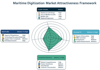 最も重要な成長機会は人工知能の活用分野において生まれると予測されており、2030年までに大きな新規収益を創出すると見込まれている。船隊管理ソリューションは効率性向上の観点から引き続き投資を集め、港湾およびターミナルはデジタル変革の中心的役割を担い続ける。