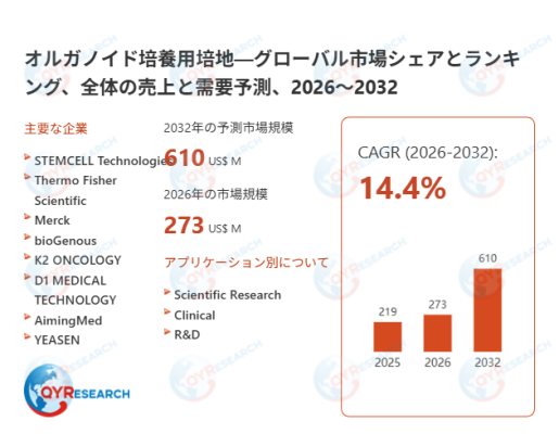 本記事は、QY Research発行のレポート「オルガノイド培養用培地―グローバル市場シェアとランキング、全体の売上と需要予測、2026~2032」に基づき、市場動向および競合分析の概要を解説します。