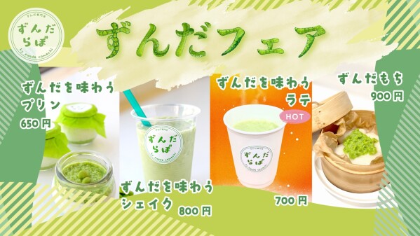 また、通常お楽しみいただける ずんだメニューのほかに、「ずんだを味わうプリン」「ずんだもち」もフェア限定で提供します。