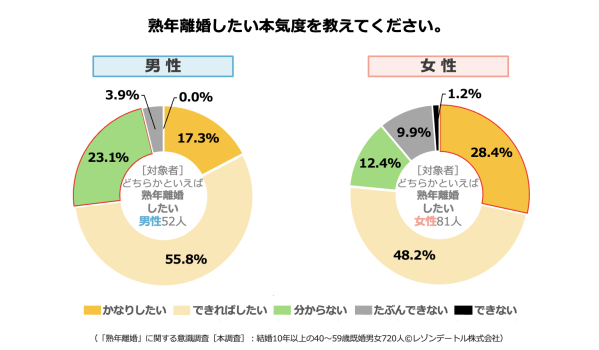 「熟年離婚したい本気度」を、以下5つの選択肢から回答を得ています。