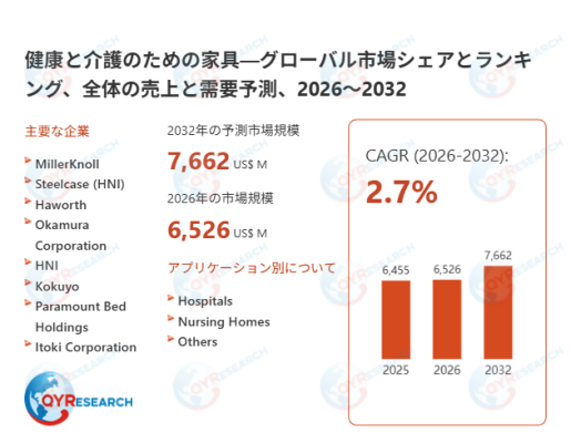 本記事は、QY Research発行のレポート「健康と介護のための家具―グローバル市場シェアとランキング、全体の売上と需要予測、2026~2032」に基づき、市場動向および競合分析の概要を解説します。