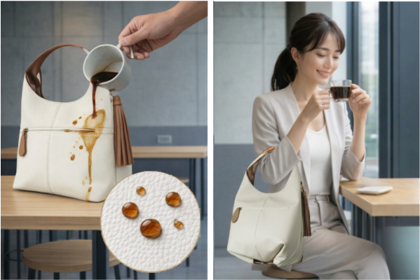 Sobagniの防汚・白合皮バッグは、「白は汚れる」という固定観念を見直すために素材から自社設計されたアイテムです。汚れが奥まで染み込みにくい表面構造により、水拭きだけでケアできる扱いやすさを実現しています。今回公開したコンテンツページでは、防汚試験データや実際の使用検証動画を通して、その特長を分かりやすく解説しています。通勤や日常使い、ギフトなど、清潔感のある白を安心して取り入れたい方に適したバッグです。