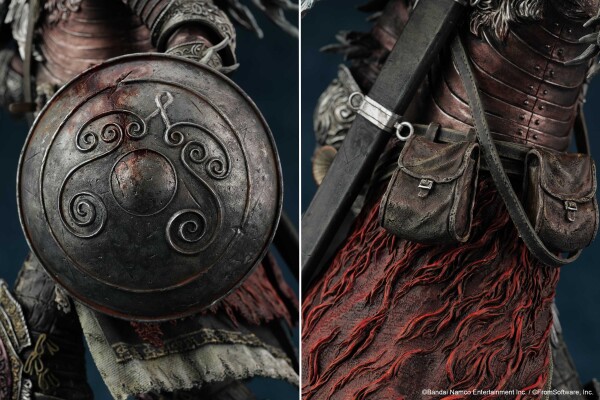 フロム・ソフトウェアによる完全監修のもと、鎧の硬質感、使い込まれた革のたわみ、そして幾多の死闘を物語る傷跡や汚れに至るまで、徹底的な造形と彩色で再現。
