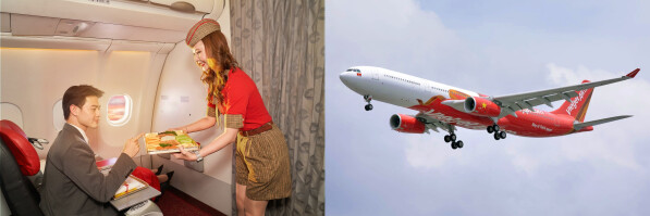 機内では、フォーやバインミー、ベトナムコーヒーといった人気のベトナム料理をはじめ、出来立ての温かい食事や各国の料理をお楽しみいただけます。ベトジェットは、最新かつ燃費効率の高い機材と、プロフェッショナルな客室乗務員により、快適で心地よい空の旅を提供するとともに、上空でも感じられる独自の文化的な演出で機内体験をさらに充実させています。