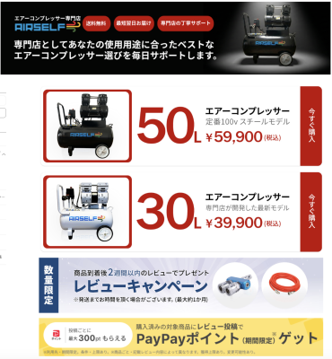 ・Yahoo!ショッピング エアセルフ店:https://store.shopping.yahoo.co.jp/aircompressor/
