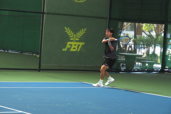 準決勝では、KOOMPAI, Patiphon選手(タイ)と対戦。サービスからの展開が安定し、確実にキープを重ねながら、リターンゲームで好機をうかがいました。積極的に前へ踏み込んでリターンを打ち、ネットプレーへと繋げる攻撃的なテニスを展開して6-0、6-0で圧勝しました。