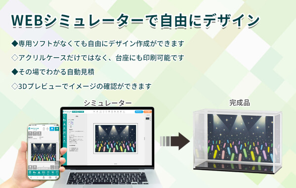 ・入稿方法:専用シミュレーターにより、画像1枚からデザイン可能