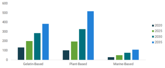 しかし、植物由来の代替品は急速に受け入れられており、2030年までに年平均成長率13.1%で成長すると見込まれている。この変化は、ヴィーガン志向、クリーンラベル志向、倫理的かつ持続可能な調達への意識の高まりによって促進されている。