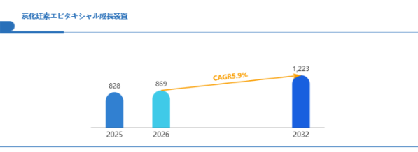 Global Reports調査チームの最新レポート「グローバル炭化珪素エピタキシャル成長装置市場規模、主要企業シェア、ランキング分析レポート【2026年版】」によると、2026年の869百万米ドルから2032年には1223百万米ドルに成長し、2026年から2032年の間にCAGRは5.9%になると予測されています。