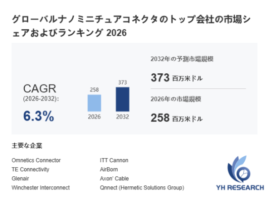 上記の図表/データは、YHResearchの最新レポート「グローバルナノミニチュアコネクタのトップ会社の市場シェアおよびランキング 2026」から引用されています。