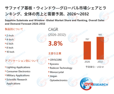 本記事は、QY Research発行のレポート「サファイア基板・ウィンドウ―グローバル市場シェアとランキング、全体の売上と需要予測、2026~2032」に基づき、市場動向および競合分析の概要を解説します。