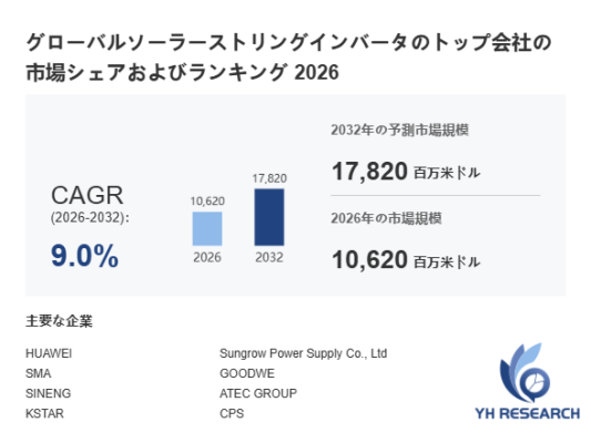 上記の図表/データは、YHResearchの最新レポート「グローバルソーラーストリングインバータのトップ会社の市場シェアおよびランキング 2026」から引用されています。