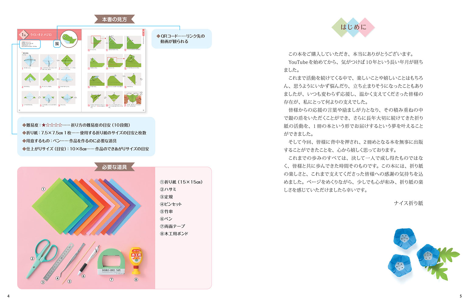 YouTubeチャンネルでも人気の折り紙作家・ナイス折り紙による、花をテーマに四季を楽しむ折り紙指南書。