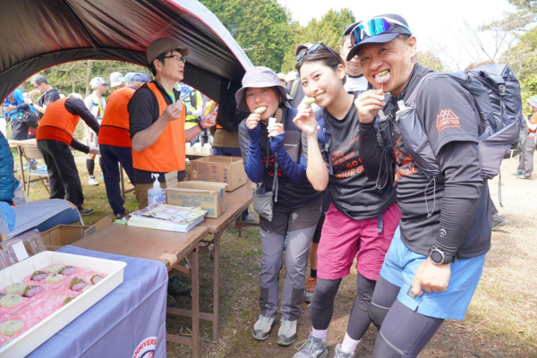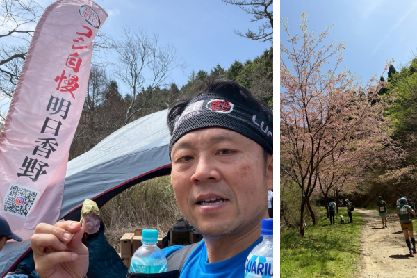 明日香野の代表取締役社長・此下もトレイルランの部に出場。エイドではもちろん和菓子を食べて、颯爽と走って完走しました。普段参加している100km、100マイル(160km)のレースからすると、少々短く感じられたのかもしれません。