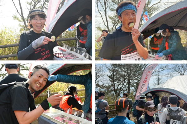 春の陽気に包まれた絶好のハイキング日和となり、参加者は春山の景色を楽しみながら帆を進めました。明日香野は初級ゴール地点となる大和葛城山で「桜・うぐいす餅」「春のわらび大福」をお渡し。一口サイズで手軽に食べられる和菓子は、疲れた状態でも「甘くて美味しい」と好評をいただきました。