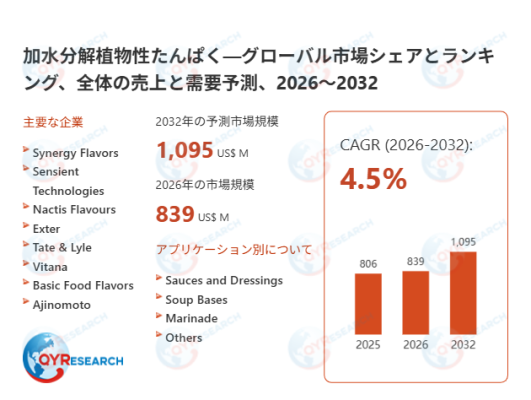 本記事は、QY Research発行のレポート「加水分解植物性たんぱく―グローバル市場シェアとランキング、全体の売上と需要予測、2026~2032」に基づき、市場動向および競合分析の概要を解説します。