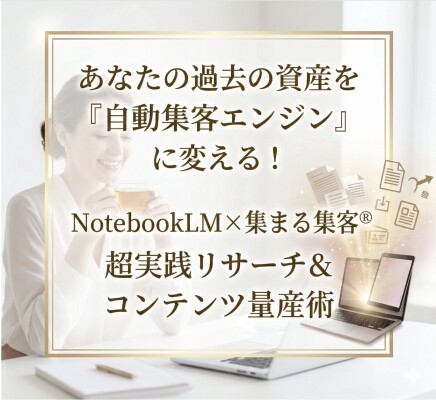 本セミナーでは、集まる集客(R)コンサルタントの雪野由香を講師に、AI NotebookLMを活用して過去のブログ・SNS投稿・動画等の資産を「感謝される小冊子」へと変換する実践的方法を共有しました。