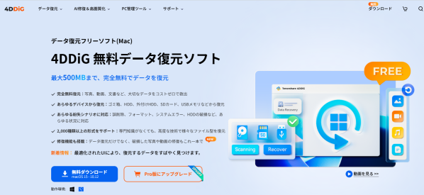 公式HP:https://4ddig.tenorshare.com/jp/free-data-recovery.html