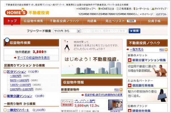 投資初心者向け新サイト「HOME'S不動産投資」をオープン