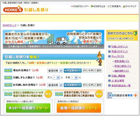 引越し見積りの新サービス「HOME'S 引越し見積り」 グランドオープン!