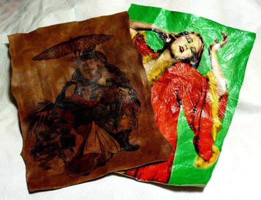 4、 直接のプリントではないので、変ったデザインアイテムや染色済みの革表面でも可能