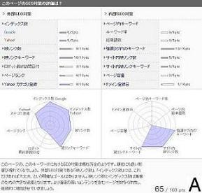 ポイントとなる数字を大きく表示。点数メーターやレーダーチャートを使用したわかりやすいレポートなので、サイトの問題点や改善点が一目りょう然。
