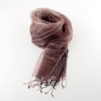 特徴:自然な風合いが生きる国内産の山繭(やままゆ)を使用し、横糸にはさらに野蚕糸(やさんし)を加えることで、流れるような美しい柄を織り出しています。広げると横幅は70cmとゆったりあり、そのままショールのように羽織ることも出来ます。また縦175cmの両サイドには粒のそろった淡水真珠が贅沢にあしらわれ、軽くねじるように巻くことでパールが見え隠れし一層華やかに。胸元や肩にこの一枚を加えるだけで、スーツやワンピースもソワレの装いに。