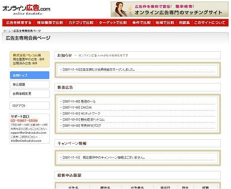 ワンストップのトータルWebカンパニー株式会社ベレコム(本社:東京都豊島区)が運営する、日本初の本格的オンライン広告のマッチングサイト「オンライン広告.com」( http://www.onlinekoukoku.com/ )は、2007年11月14日、オンライン媒体への広告出稿を検討されている広告主様向けに、広告料金の割引や、専用Myページ機能を持つ、完全無料の会員制度を創設し、会員登録をサイト上で開始いたしました。
