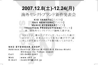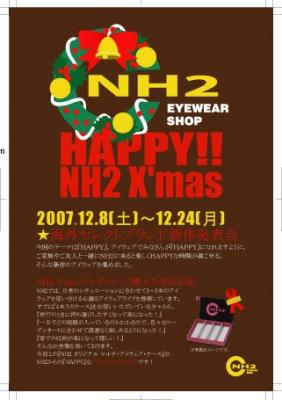 このたび、(有)エヌエイチツー(代表取締役 高本尚紀)は、恵比寿のアイウェア専門店NH2でクリスマスイベントを行いますのでお知らせいたします。