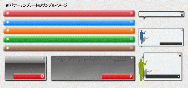 『1行訴求型のバータイプ』のテンプレートには、半透明タイプも合わせると、カラーバリエーションも含め32パターンのバナーがあります。