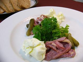 スパイシーでジューシーなペッパーハム(パストラミ)と生クリームチーズをたっぷり練りこんだムースタイプの自家製チーズを盛り合わせました。