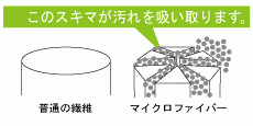 マイクロファイバーは人の髪の毛の100分の1という超極細繊維でできた素材です。その特性は、吸水性、速乾性、抗菌・除菌作用を持ち、