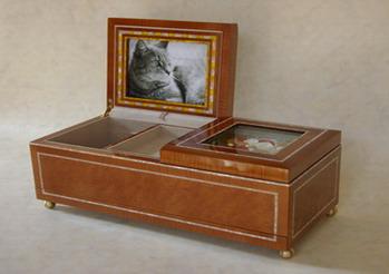 火葬後の遺骨を骨壷ごと収納し、首輪や血統書などと一緒に保管する事が出来ます。