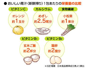 「おいしい青汁〈新鮮搾り〉1包あたりの栄養量の比較」