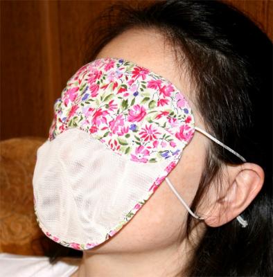上部のアイマスク部分はピンクの花柄の綿を使用し、下部のマスク部分はメッシュ製で通気性と保湿性の両方を保ち、