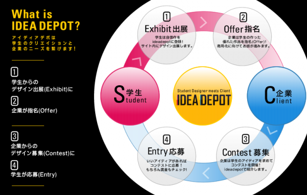 この度(株)アイディアデポは学生デザインマッチング(コンテストサービス&デザインポートフォリオ出展)