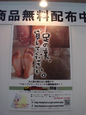 2008年2月5日~8日に開催された第65回東京インターナショナル・ギフト・ショーで3,000人の足の裏、お借りしました。これは、なんと大人気の削らない角質ケア『ベビーフット』を無料で3,000名様に配布して、その効果を実際に体験していただく太っ腹キャンペーン。期間限定・会場限定・効果には自信あり!だからできるキャンペーンです。